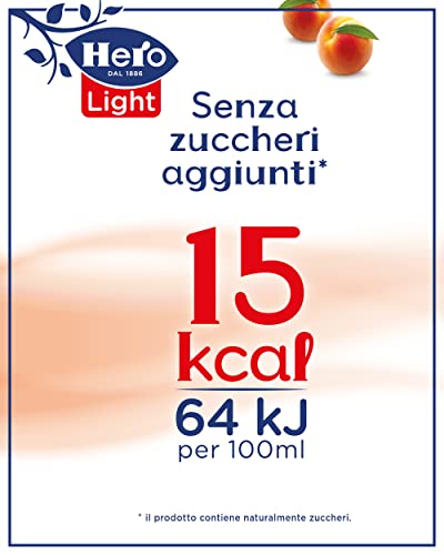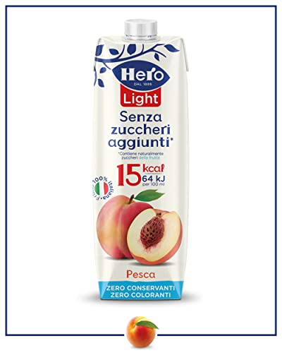 Hero Light bevanda di frutta gusto Pesca, 8 bottiglie da 1L, succo di frutta con pochissime calorie per porzione, senza zuccheri aggiunti, zero conservanti, zero coloranti – 8000 ml