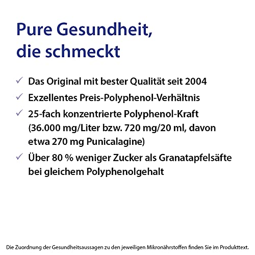 Eccezionale rapporto qualità-prezzo: polifenolo concentrato 25 volte di forza polifenolo di tutto il melograno, prodotto in Germania secondo rigorosi controlli di qualità